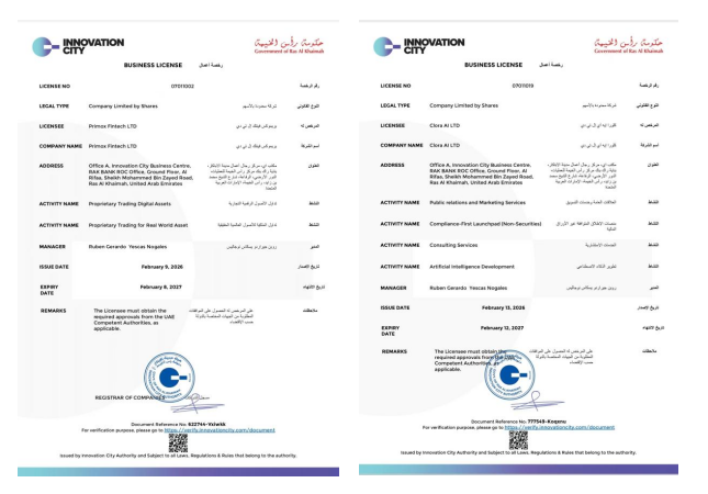 PrimoX Fintech LTD recently announced that it has successfully registered and established in the UAE Innovation City, and has been granted a digital asset commercial license (license number: 07011002/07011019), marking the successful first step of PrimoX's global compliance operation strategy. This milestone not only establishes PrimoX's physical operation base in the Middle East, but also lays a solid regulatory foundation for the global expansion of its consumer-aligned RWA business model.
